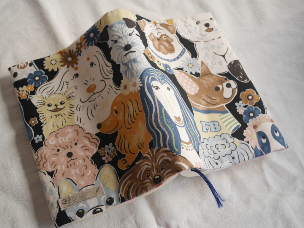 そんな時に、お気に入りの本にこのブックカバーつけて、ミニトートバッグに入れて近くの公園のベンチで読書はいかがですか。ふと目を落とすとたくさんのわんこと目が合う、そんな癒しのひとときを過ごしてもらえたら嬉しいです。