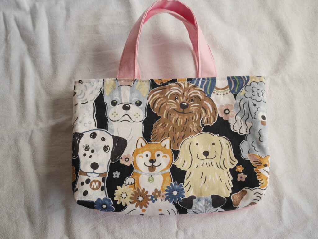 ちなみにですが、大型犬の柄の生地って柴犬などに比べると種類が少なくて、描いてあるの貴重だったりします!私自身犬が大好きなのですが、この柄見つけたときは速攻でカートに入れていたくらいお気に入りです。